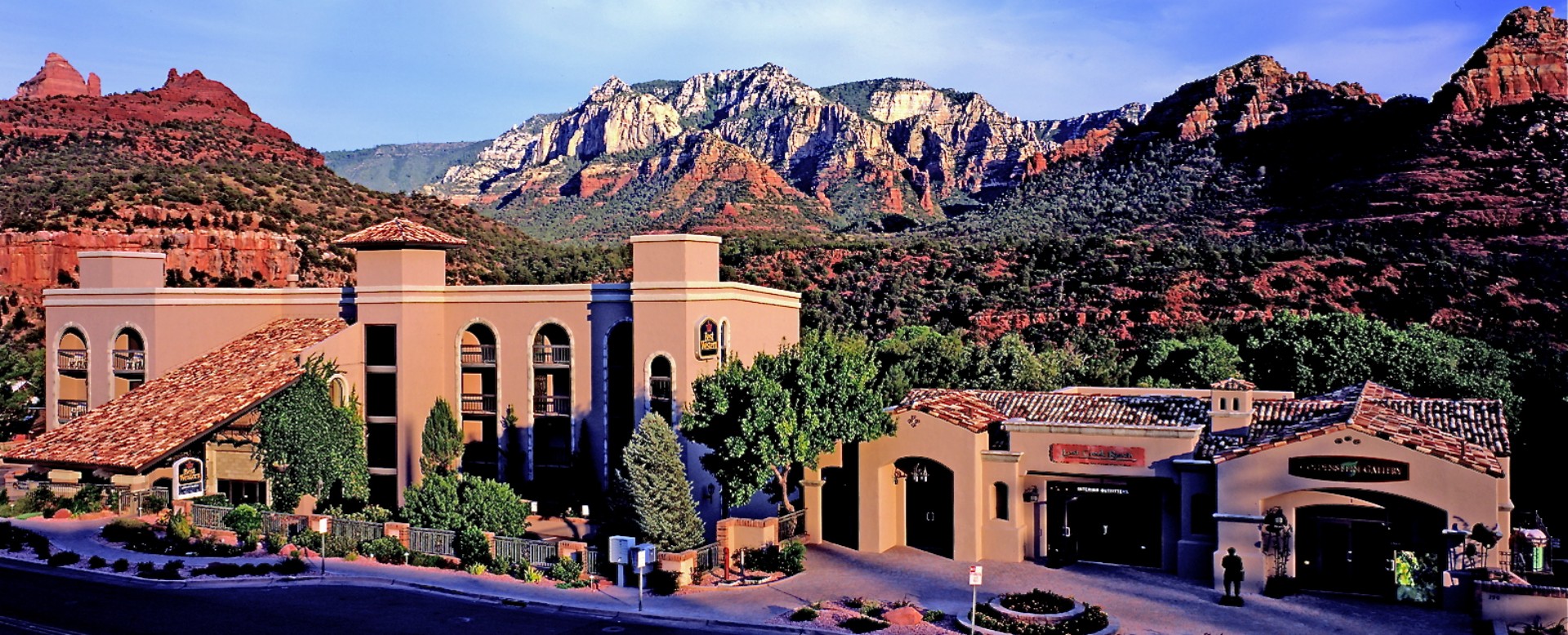 贝斯特韦斯特塞多纳酒店正好能展示所有的塞多纳名胜。酒店的获奖露台设计充分利用其位于山顶的位置,四周铺设的散步甲板使得入住酒店的客人无需外出即能体验红砂岩石的360度美景。客人们可以在清晨沿着日出方向漫步,边吃早餐边欣赏美景。到了晚上,可以斟上一杯美酒漫步至甲板西面观看壮观的日落.